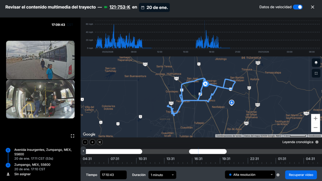 Contamos con videovigilancia en tiempo real y tecnología de IA proporcionada por Samsara, lo que nos permite ofrecer a nuestros clientes la tranquilidad de que cualquier incidente será registrado con evidencia clara. Esto facilita el deslinde de responsabilidades entre operadores y asociados, asegurando un servicio más seguro, transparente y eficiente.